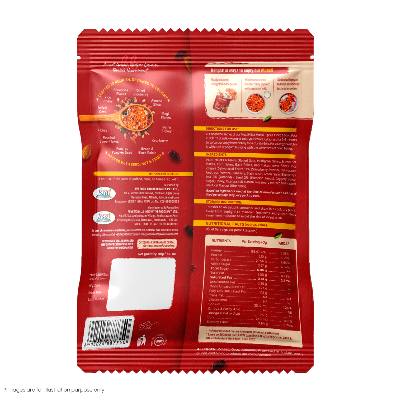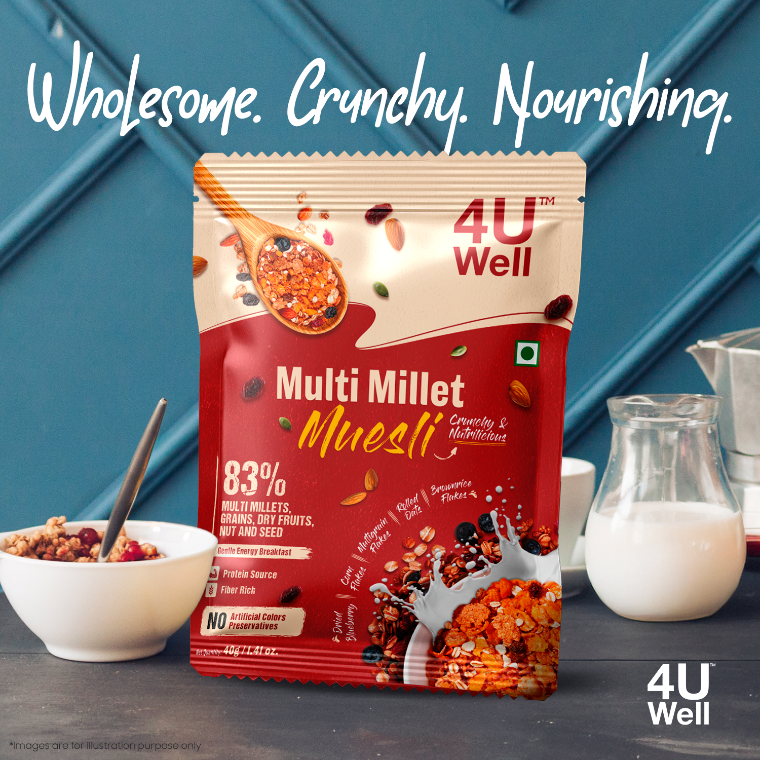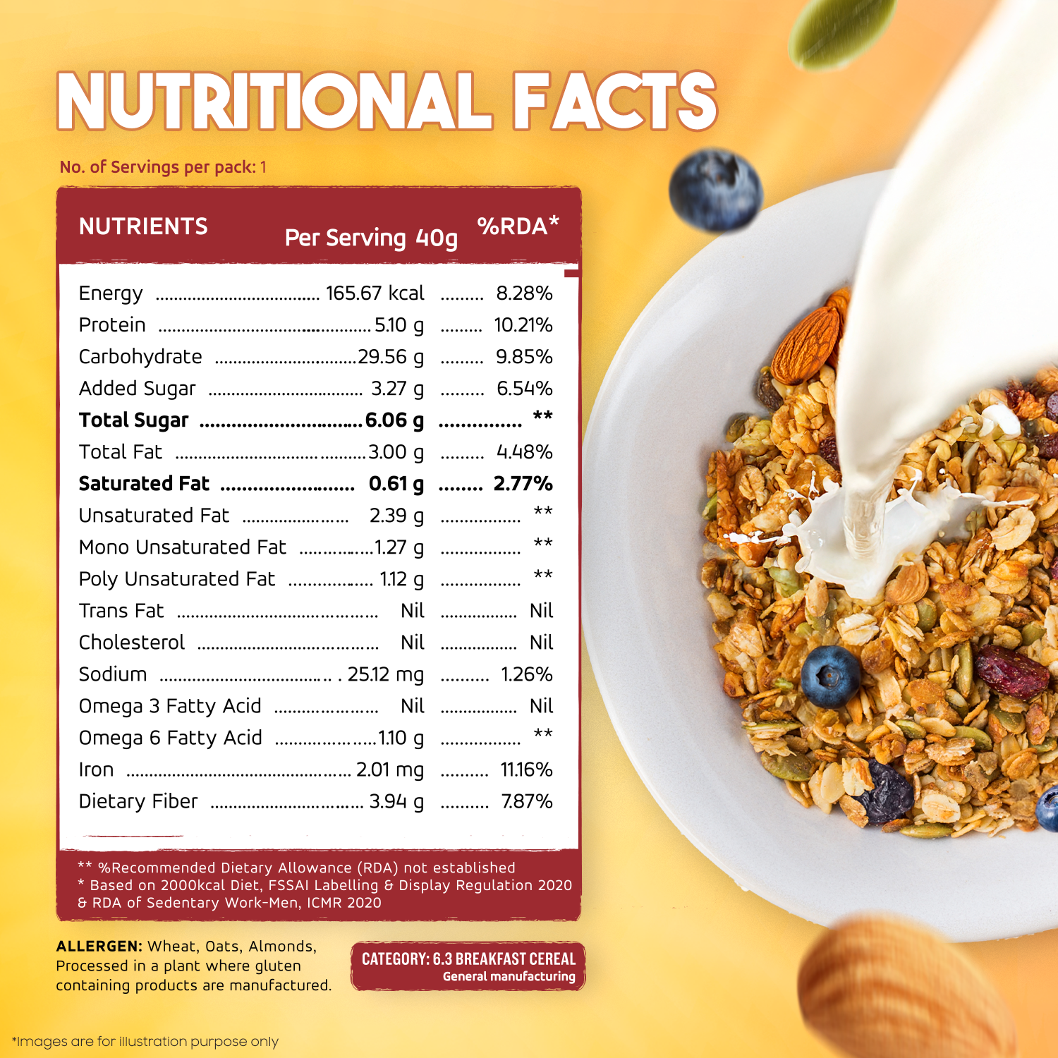 Allow the Multi-Millet Muesli to sit for 2-3 minutes in the milk if you prefer a softer texture, or consume immediately for a crunchy experience.