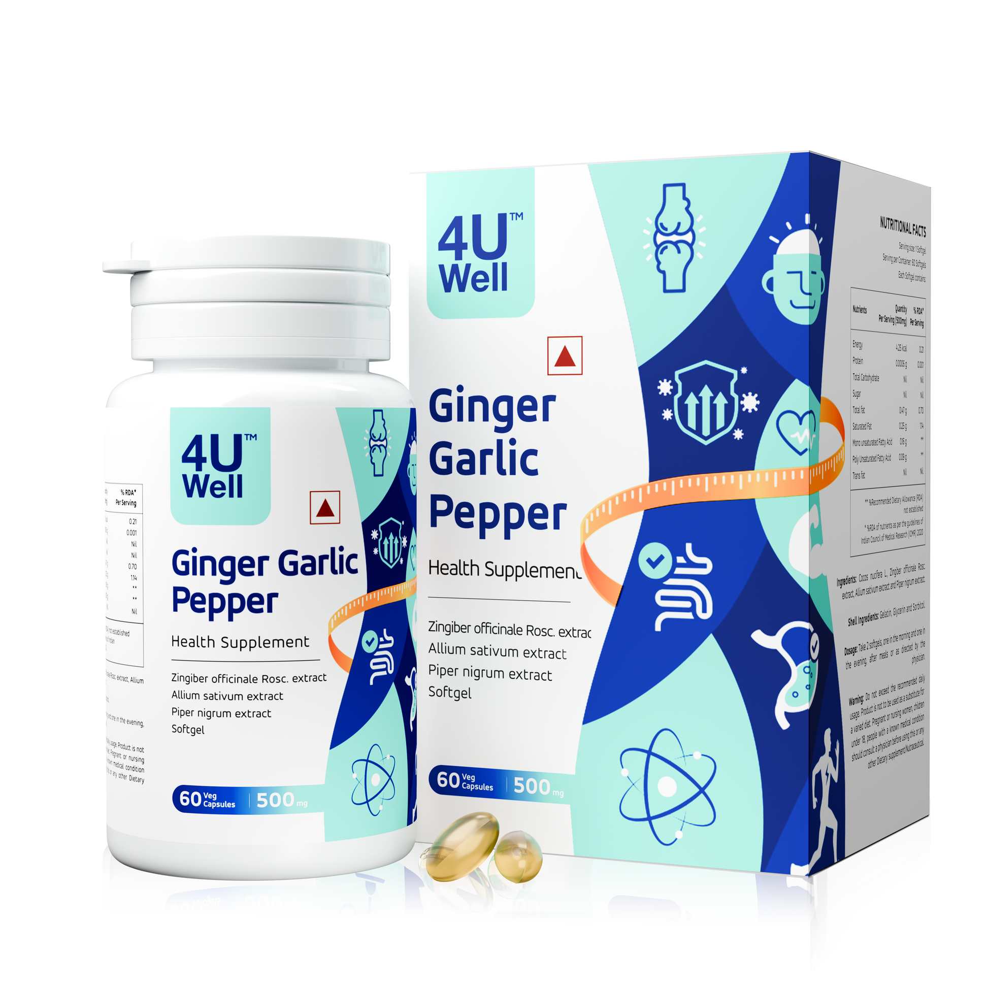 Ginger Garlic Pepper Capsules are a powerful herbal supplement formulated with time-tested superfoods known for supporting digestion, immunity, and overall wellness. Made from Zingiber officinale (Ginger), Allium sativum (Garlic), and Piper nigrum (Black Pepper), this synergistic blend delivers natural antioxidants and bioactive compounds that help promote daily health. Each capsule provides a concentrated dose of pure ginger, garlic, and black pepper extracts, helping to support energy levels, immune defense, digestive health, and general well-being making it an ideal addition to your daily wellness routine.
