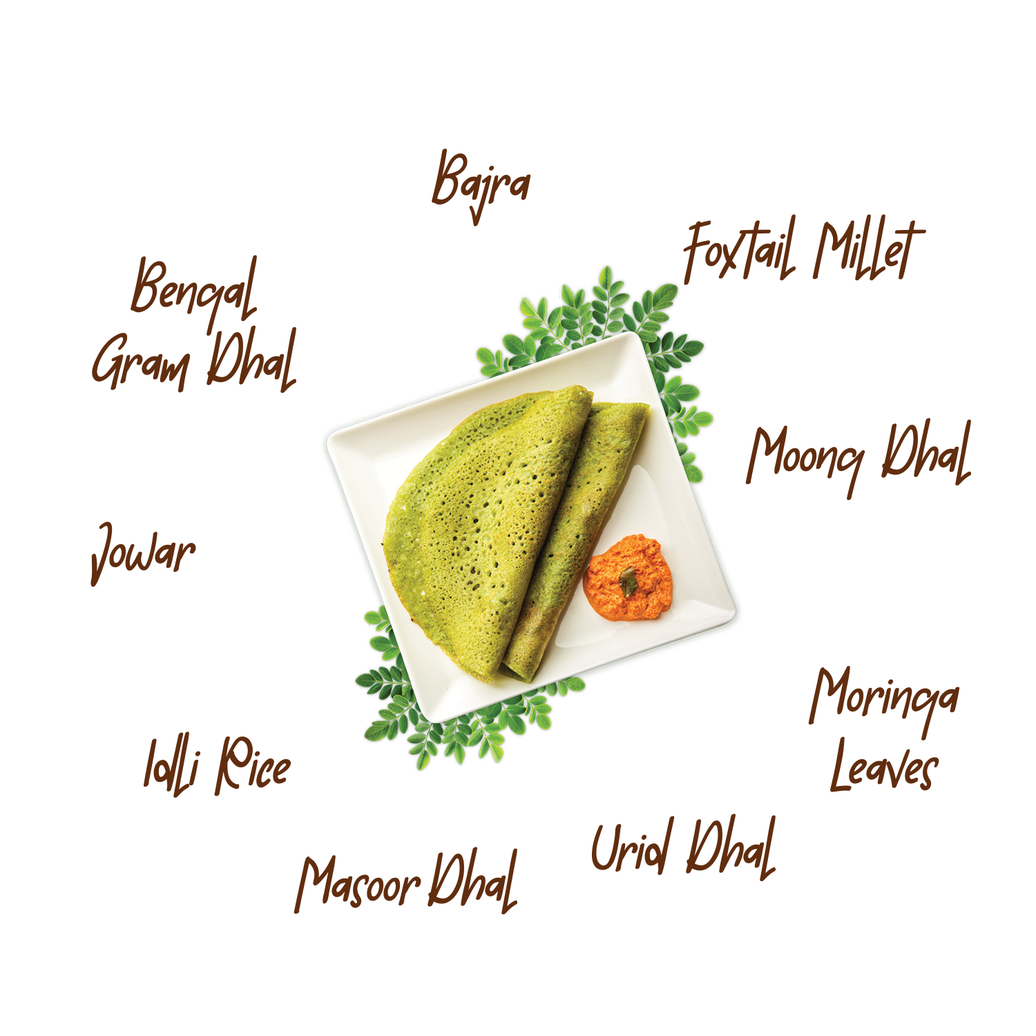 Our Moringa Dosa Mix is crafted with a wholesome blend of nine traditional ingredients, each chosen for its rich nutrition and authentic taste. Inside every pouch, you’ll find jowar flour, bajra flour, foxtail millet flour, moong dhal flour, bengal gram dhal flour, urad dhal flour, masoor dhal flour, idli rice flour, and the goodness of dehydrated curry leaves, asafoetida, cumin seeds, and dehydrated moringa leaves powder. This unique combination delivers high dietary fibre, plant-based protein, and essential minerals. Free from artificial additives, it’s a ready-to-cook mix that brings you the perfect balance of health, flavour, and convenience in every serving.